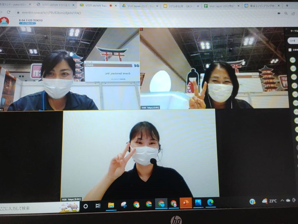 こんにちは。MICEチームの加藤です。先日、Visit Japan Travel & MICE Mart 2022に出展してきました!今回は、オンラインと対面のハイブリッドでの3日間開催となりました。イベントサービスの出展ブースが一番目立っていたように思います!いつも全力で飾り付けをします!3日間で27社の皆様と商談をすることが出来ました。弊社のブースに足を運んでいただいた皆様、本当にありがとうございました。オンラインでは、なかなか伝わりづらいこともありますが、色々な国の方と話し、情報交換をするのはとても刺激的です。ポジティブでエネルギッシュな海外の皆様から、元気をもらいました!皆さん日本に行きたいとウズウズしています。MICEチームでは、皆様に記憶に残る素敵な体験をしていただけるように、日々色々とアイデアを考えています。最近では、ありがたいことにお問合せの数もグッと増えてきております。皆様と一緒にお仕事が出来る日を、楽しみにしています!